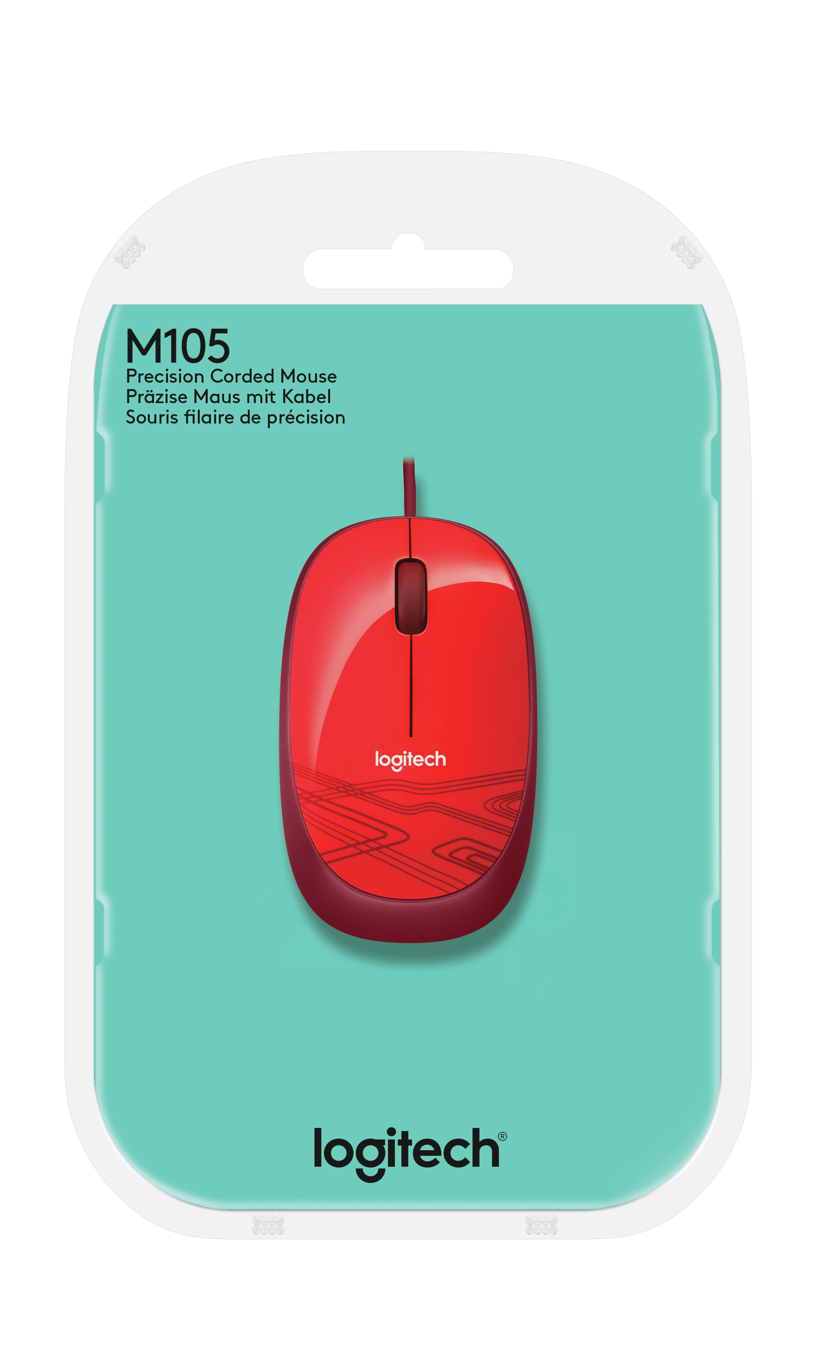 Logitech M105 ratón USB Óptico Ambidextro Rojo
