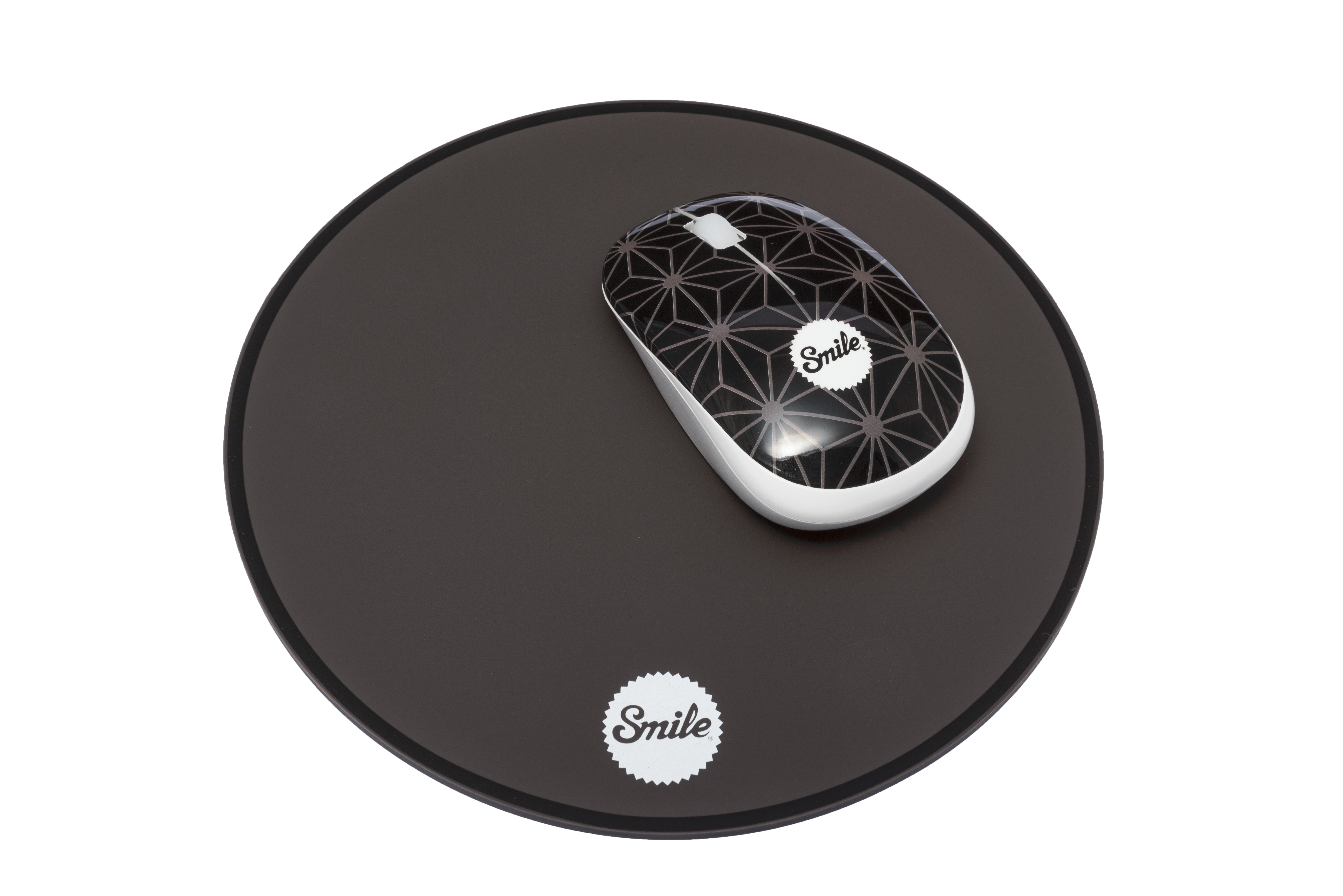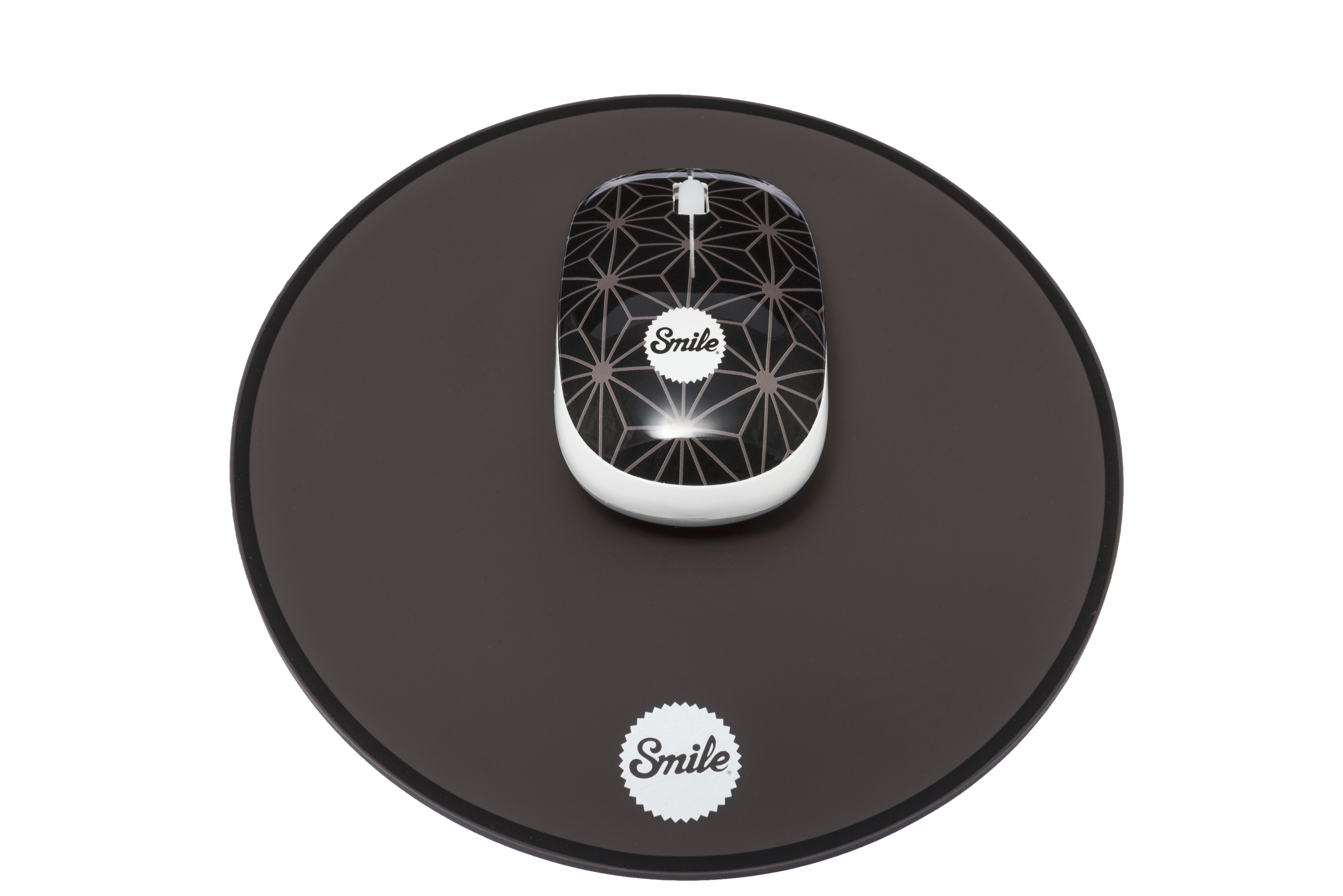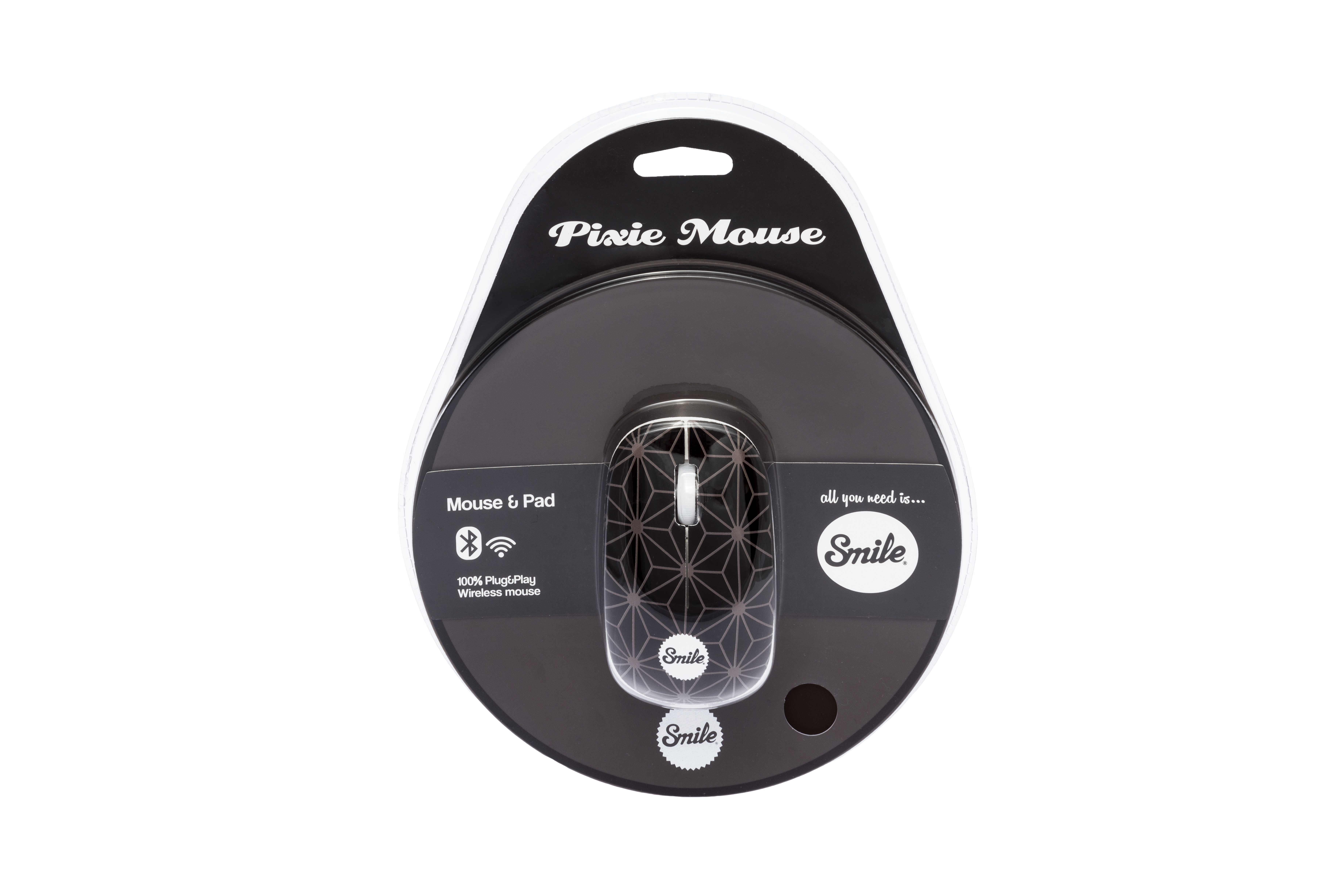 Conjunto de ratón wireless Smile Pixie con alfombrilla de Silicona de 3mm Funciona con pila AA. Diseño ergonómico con parte superior antideslizante Ratón con tecnologia óptica. Óptica con precisión de 1000 dpis Incluye dongle USB incorporado en el ratón compatible con USB 2.0 o superior Diseñado en Barcelona. 3 botones: izquierdo, derecho y rueda de scroll de precisión 100% Plug & Play. Sin necesidad de driver. Compatible con Windows y Mac. Optimizado para un uso ergonómico. Packaging : blister en burbuja transparente e información en varios idiomas Alfombrilla Smile circular de precisión en silicona de alta densidad de 3mm Tamaño (sin cable) : 125x34x85 mm. Peso: 134 gr. Manual de instrucciones en castellano
