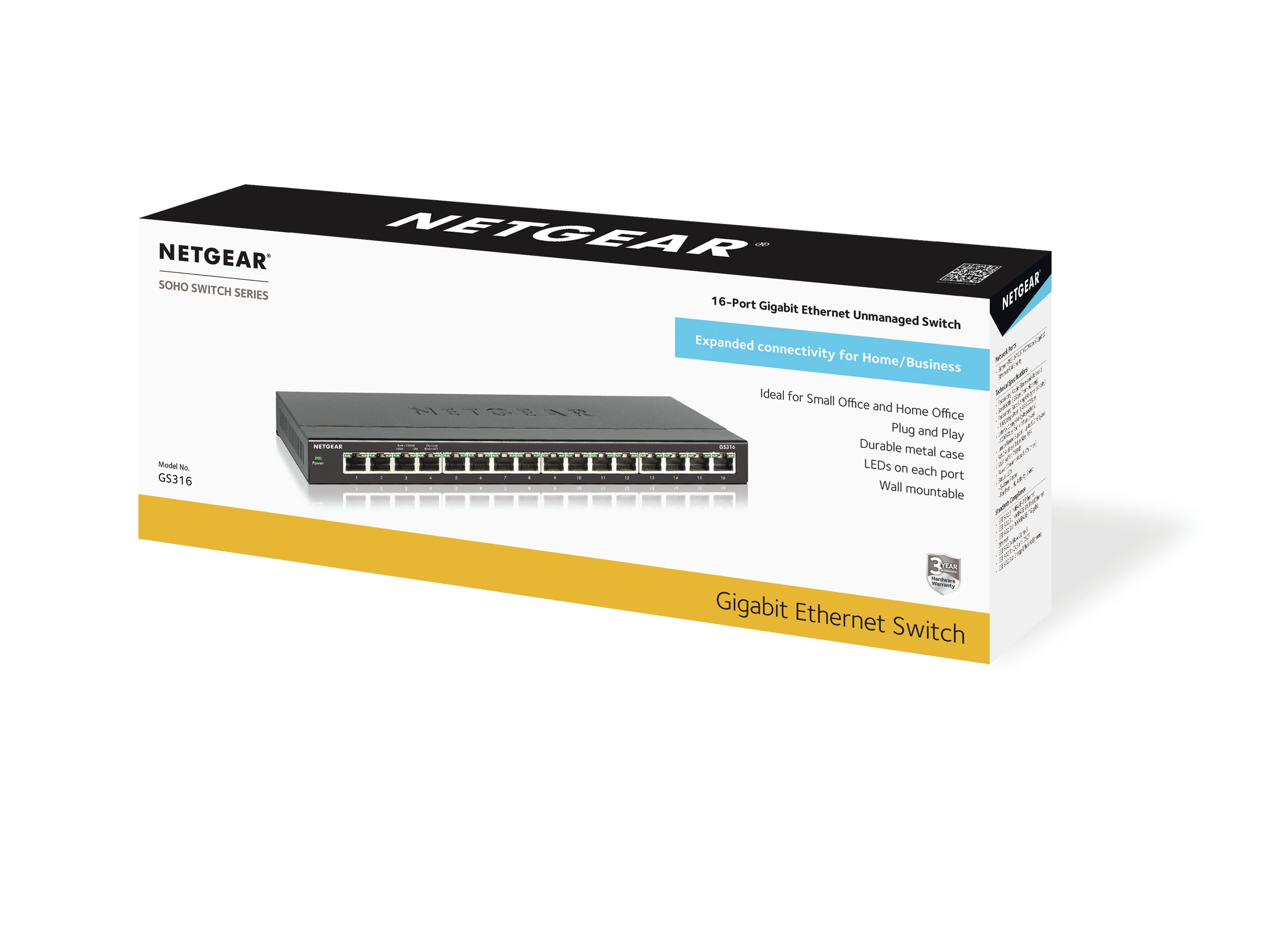 Netgear GS316 Unmanaged network switch Gigabit Ethernet (10/100/1000) Negro